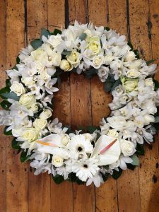 White Orchids and Anthurium Posted by FHT 2 Admin July 25, 2021 On July 25, 2021 Small size Wreath White Orchids and Anthurium